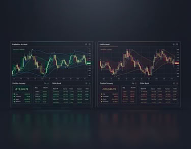 The evaluation account grows faster, and the reverse-hedged live account keeps your real money protected.