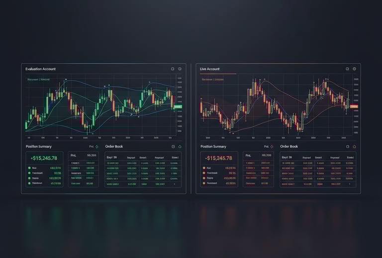 real-account outcomes stable across all scenarios. Whether an evaluation passes, hits payout, or fails early,